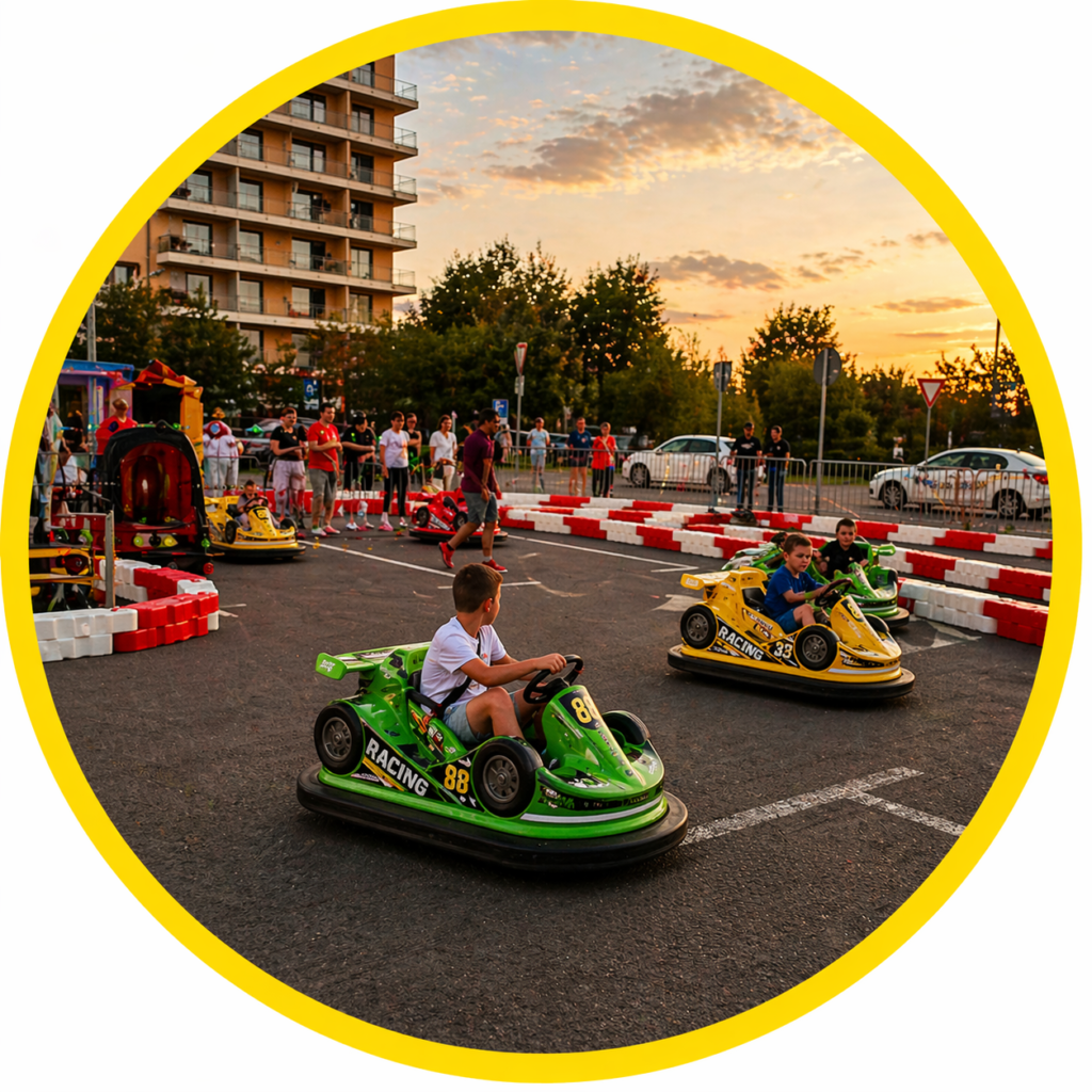Enter the competition on our special track with brightly colored and energetic cars! Little drivers can control the steering themselves, learning their first driving lessons in a safe and cheerful environment. It is the place where friendly competitions and smiles are guaranteed at every turn of the circuit.